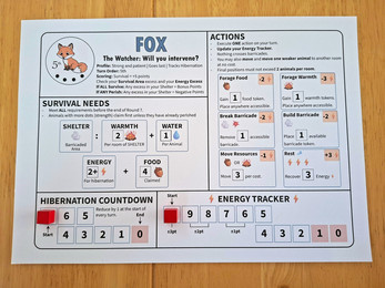 - 5 animal player cards (actions, survival needs, energy tracker)