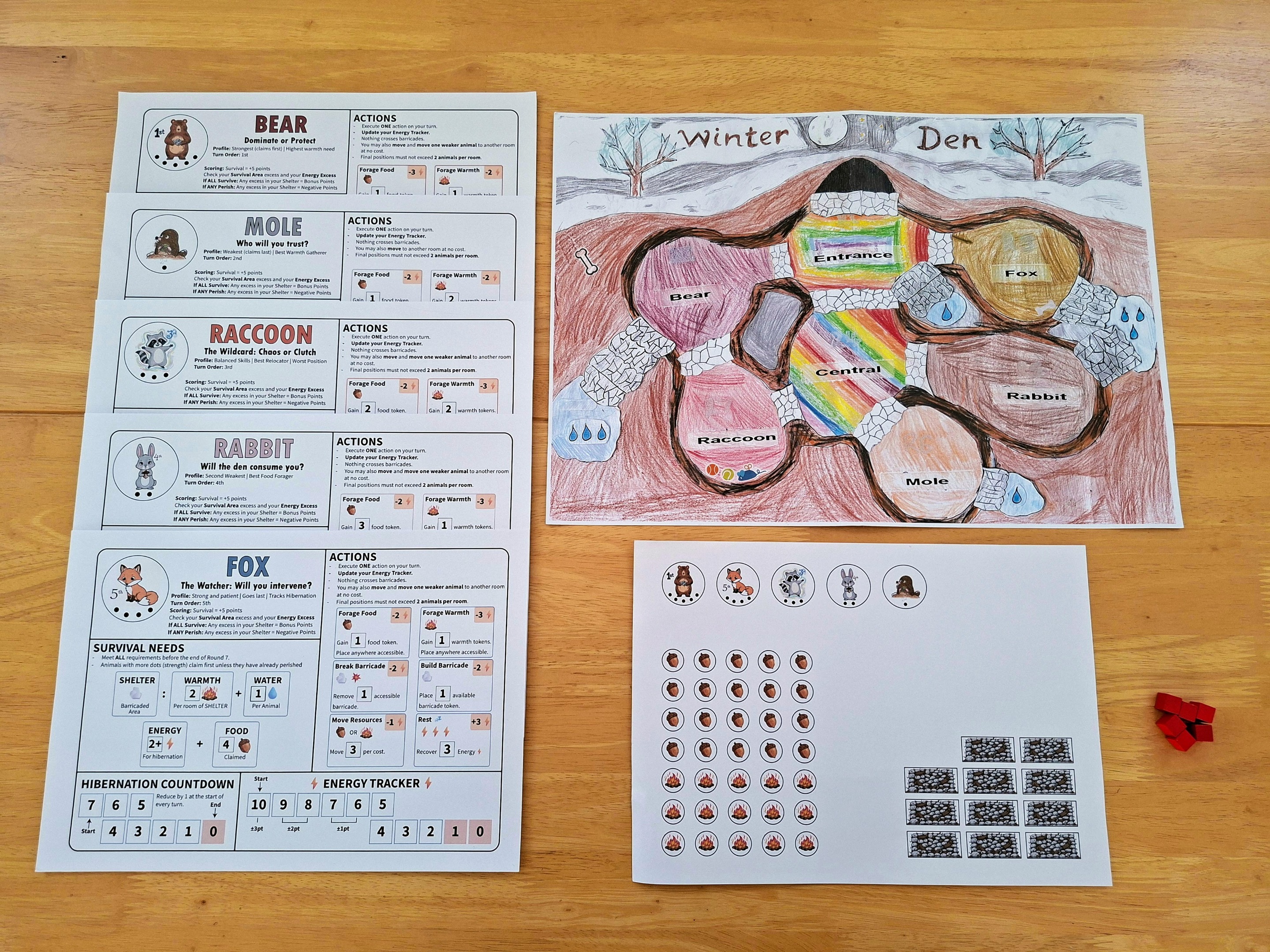 - Token sheet (animals, food, warmth, barricades)
